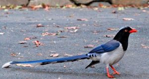 前天遇到的事情让我有些感触,周一晚上和同门在四食堂吃过饭后回实验室,走到实验室和马克思学院中间那条路时,忽然有只很大的鸟抓了下我头,体型很大,大概有二三十公分,刚开始以为是灰喜鹊,后来根据特征搜索以后知道了它的学名,叫红嘴蓝鹊,外形如图1所示。燕姐和师妹还开玩笑说我太坏了,那只鸟以为我会爬树掏鸟窝所以才攻击我,我还反驳说这是好事,还珠格格里蝴蝶还围着香妃飞呢,话没说完,又被抓一下,有点疼  ̄□ ̄||,回到实验室后,发现峰哥他们都在飞哥的办公室趴在窗户上围观外面,才发现,有两只鸟落在了落在了离我们实验室那栋楼不远的地方,刚刚我被鸟抓的地方离小鸟现在的位置非常近。成鸟大概是 以为我要袭击它们孩子所以才抓了我,继续在窗边张望,发现后来路过的很多人都被那几只成鸟挠了头,于是决定下楼走到附近一探究竟。