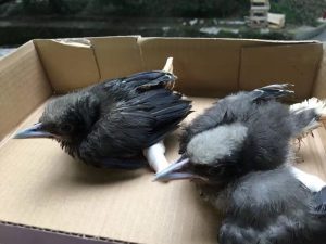 窗外的那群成鸟还在叽叽喳喳的叫,如图2所示,我们把包扎后的雏鸟放在了一个纸盒子,然后放到了飞哥办公室的窗台,希望成鸟能把它们带走。本来想在实验室养着,后来觉得如果我们在实验室养着的话,又不太可能每天找虫子给它们吃,感觉是肯定养不活的,让成鸟带走还会有些希望,希望成鸟后面能把它们带走。十点多离开实验室时,两只雏鸟还在窗台的纸盒子里呆在,然后昨天早上到了实验室,神奇的发现不见了,问了比我早到实验室的几个同学,都说他们也没看到,应该是晚上被成鸟带走了吧,希望是这样。